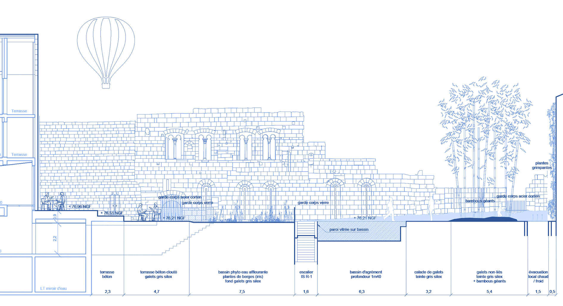 Maîtrise d’œuvre des jardins et de la cour : A+R Paysages